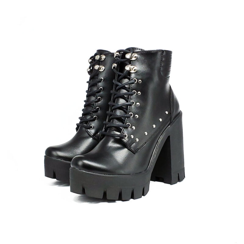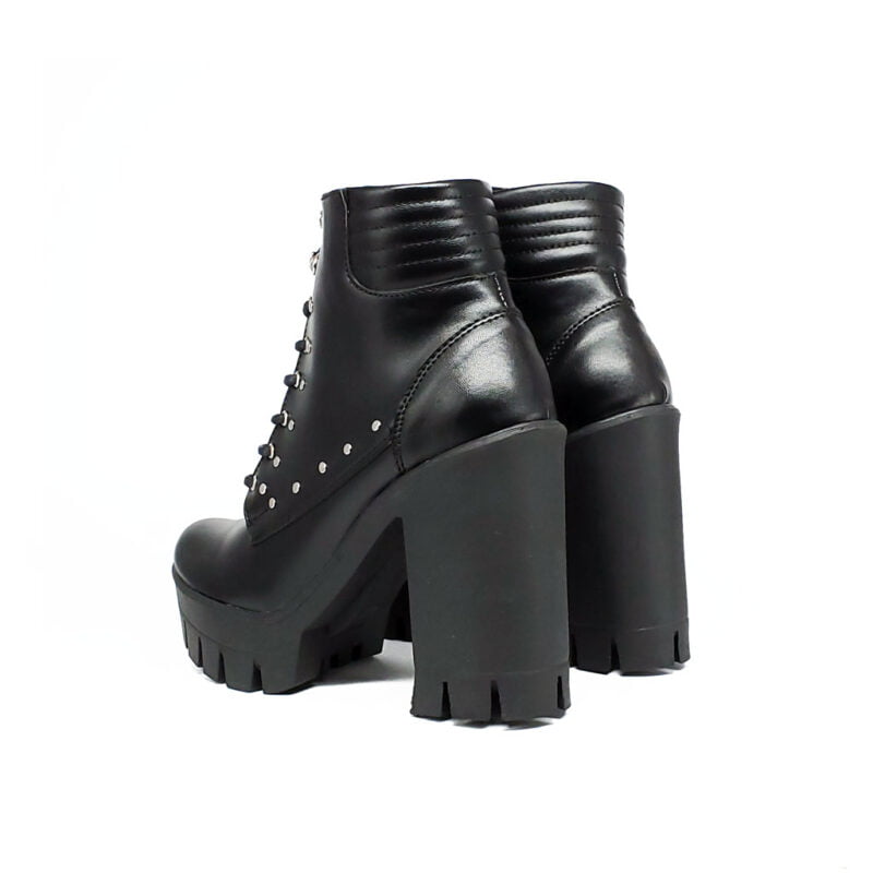 Bota para Mujer Elaborada en Cueros Sintéticos de alta resistencia y duración , montada en suela de Caucho TR antideslizante , esta Suela ofrece comodidad y confort a pesar de su altura, altura de 9.5 cm menos 2 cm de plataforma ( altura de la horma 7,5cm), Horma redonda ideal para toda ocasión , diseño elegante y juvenil ideal para tu dia a dia , adornos con Cordón y tache metalico lateral con diseño vanguardista , disponible desde la talla 34 hasta la 39